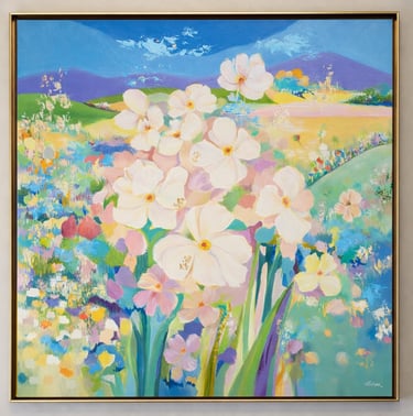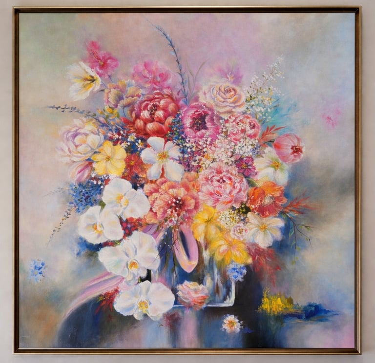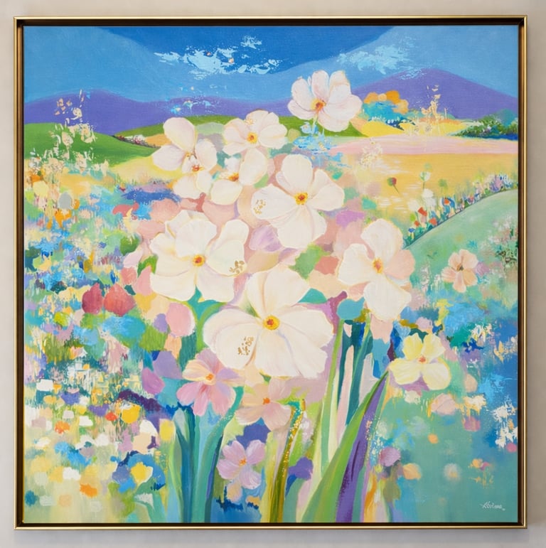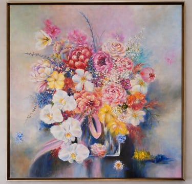Her paintings emerge through an intuitive and meditative process, allowing each work to unfold organically while maintaining compositional clarity. Through luminous palettes and tactile brushwork, Alviena invites viewers into moments of quiet reflection—spaces where beauty, impermanence, and interior stillness converge.