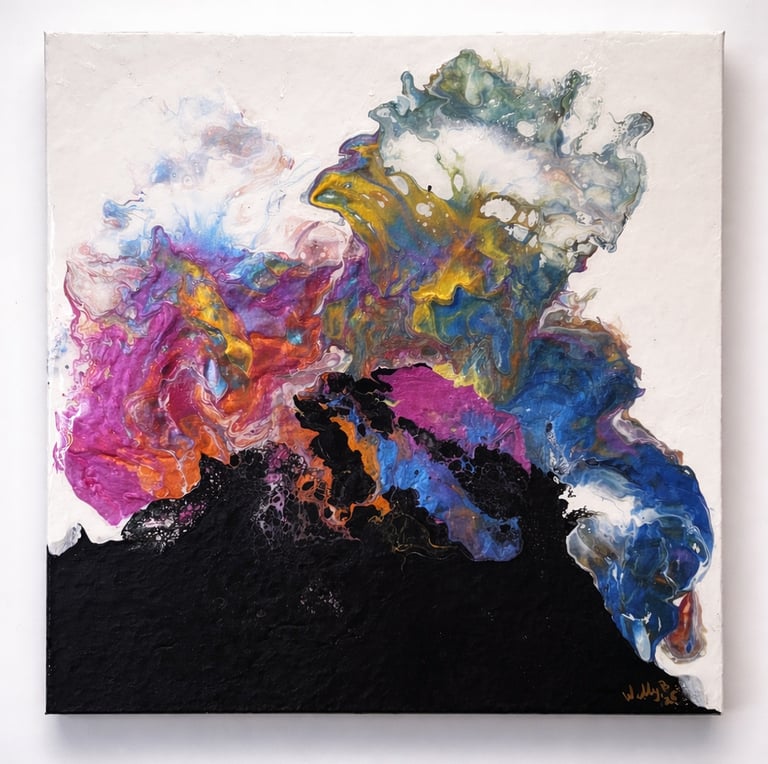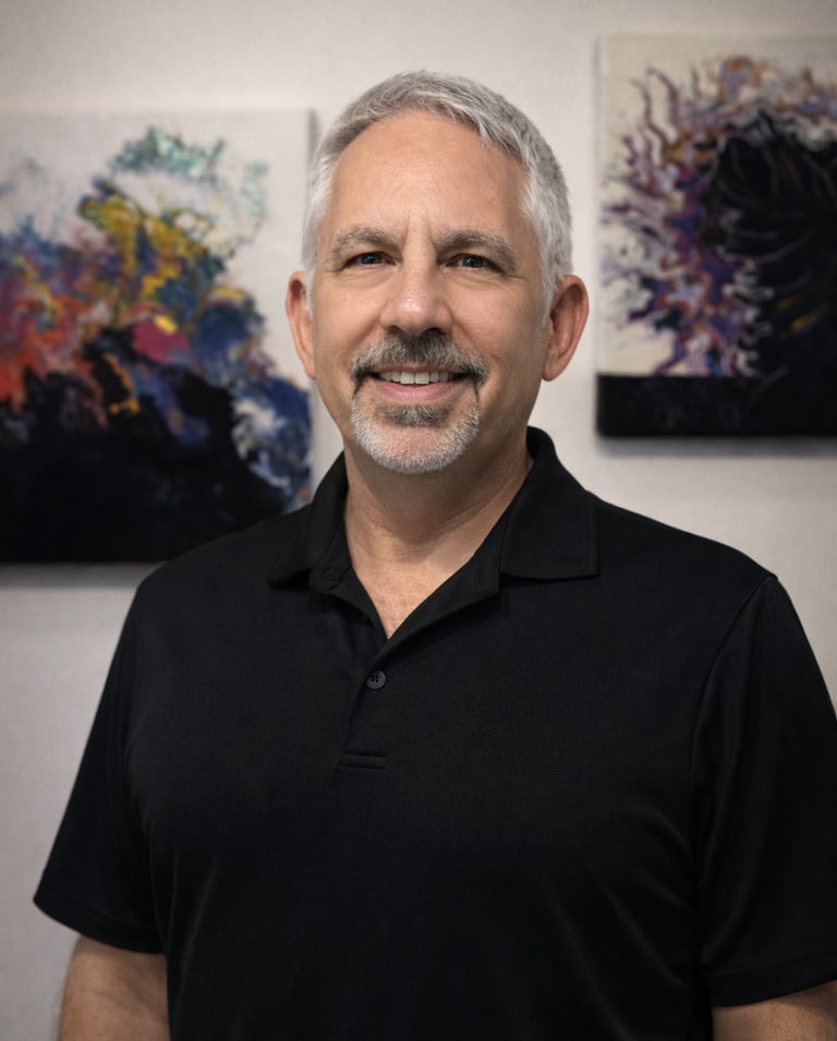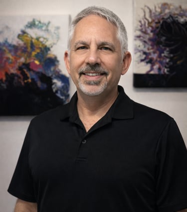 In 2020, Baron turned his lifelong interest in visual expression into a focused pursuit. What began with representational subjects — tropical birds, florals, and iconic figures — evolved into increasingly interpretive and abstract works distinguished by bold color relationships and dynamic movement.