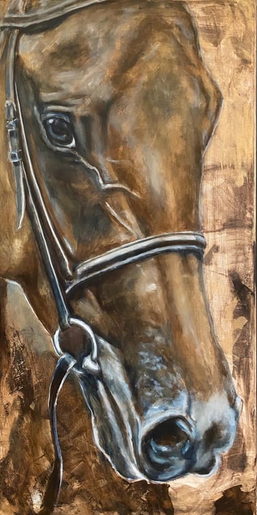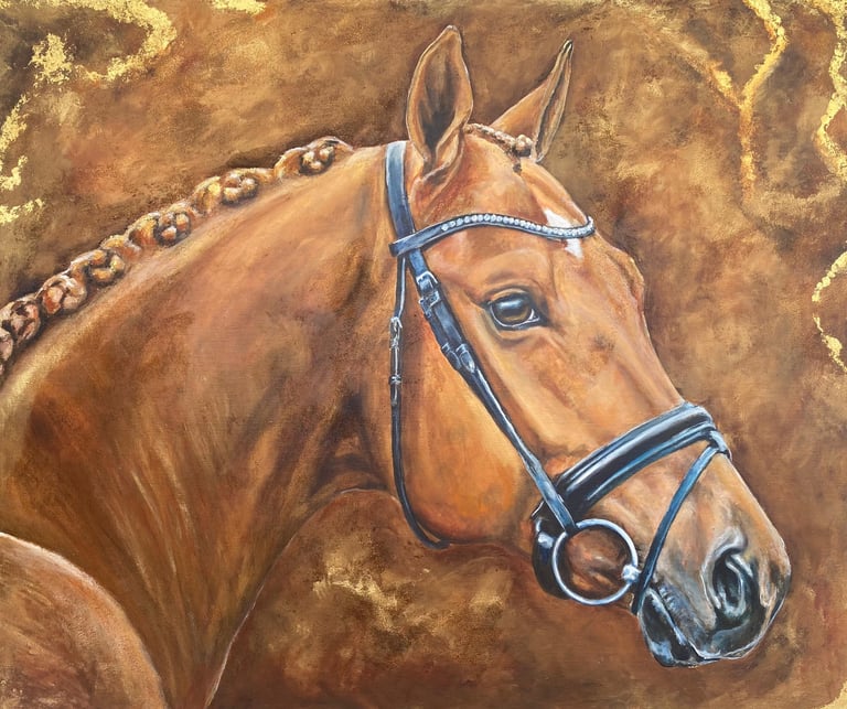 Lena's work is centered on the spirit, expression, and character of horses. Whether it’s the powerful elegance of a dressage horse, a swift polo pony chasing the ball, or a playful foal in the field, she seeks to capture their energy, trust, and the deep bond they share with humans. She primarily works in acrylic and oil but also finds inspiration through photography, always seeking to capture moments that she later translates into her art.